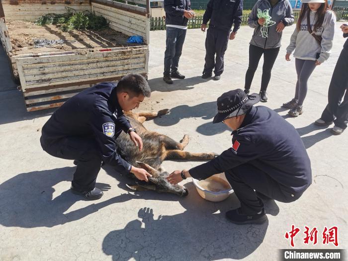 現(xiàn)場檢查發(fā)現(xiàn),“四不像”后腿受傷、身體虛弱,無法自行離開,巡邏民警隨即疏導(dǎo)交通,組織警力將其帶回派出所處理傷口、投喂水食,并及時移交米林市林草局進一步救治。