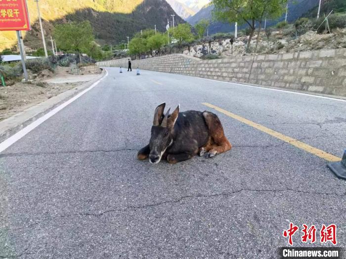 近日,西藏林芝邊境管理支隊里龍邊境派出所巡邏民警發(fā)現(xiàn)一頭“四不像”橫臥在219國道,嚴(yán)重影響交通安全。