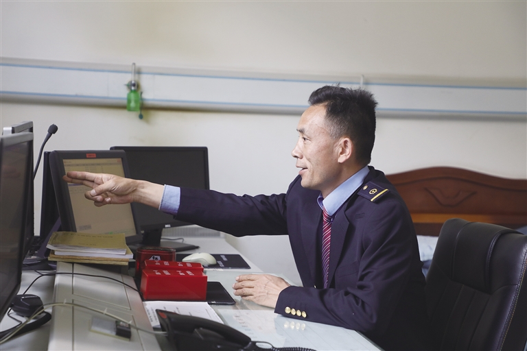 “這里的工作雖然看似單調(diào),實(shí)則責(zé)任很大?!辟R文貴身穿深藍(lán)色的鐵路制服,胸前佩戴著亮閃閃的工牌,顯得精神抖擻。他像一名嚴(yán)謹(jǐn)?shù)膽?zhàn)士,緊盯著操作臺(tái),確認(rèn)信號(hào),口呼手指?!∽鳛檐囌局蛋鄦T,賀文貴每天的任務(wù)主要是監(jiān)視列車進(jìn)路和區(qū)間動(dòng)態(tài),保證行車安全。工作中的他認(rèn)真負(fù)責(zé),嚴(yán)格執(zhí)行標(biāo)準(zhǔn)化作業(yè),他常說:即使單人值守,該有的程序、作業(yè)步驟一項(xiàng)都不少,作業(yè)標(biāo)準(zhǔn)必須嚴(yán)格執(zhí)行,保證作業(yè)安全。