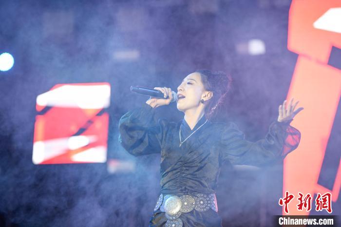 圖為歌手巴金旺甲正在演唱歌曲《故鄉(xiāng)》。貢嘎來松 攝