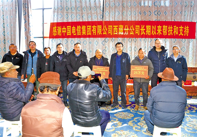 中國(guó)電信西藏公司黨委書記、總經(jīng)理周清久代表公司向霍爾巴鄉(xiāng)和吉拉鄉(xiāng)分別捐贈(zèng)25萬(wàn)元幫扶資金。