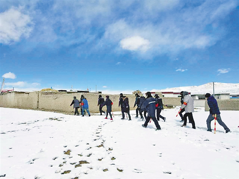 中國(guó)電信西藏公司駐霍爾巴鄉(xiāng)駐村工作隊(duì)與當(dāng)?shù)嘏沙鏊谪暽4逯車_展巡邏。