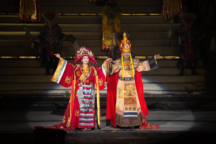 同一個(gè)夜晚,穿過近2000公里,在日光城拉薩,婉轉(zhuǎn)的唱段中,依山而建的舞臺(tái)上,大型史詩劇《文成公主》講述著盛唐時(shí)期公主從長安城到邏些(拉薩舊稱)的故事,一幅民族交往交流交融的歷史畫卷就此展開。