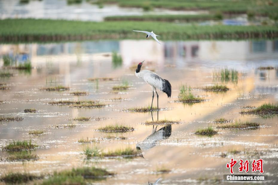 6月12日,西藏那曲市申扎縣一只黑頸鶴在濕地里覓食。申扎縣,平均海拔超過4500米,是黑頸鶴在中國的主要繁殖地之一。每年4月到6月,成群的黑頸鶴會(huì)來到這里,筑巢、孵化、養(yǎng)育下一代。近年來,為了保護(hù)這些珍貴的生靈,申扎縣采取了一系列措施,設(shè)立了監(jiān)測(cè)站,對(duì)黑頸鶴的棲息地進(jìn)行24小時(shí)監(jiān)控,確保它們的繁殖不受干擾。黑頸鶴是國家一級(jí)保護(hù)動(dòng)物,也是世界上唯一一種生長、繁殖在高原的鶴類。貢嘎來松 攝