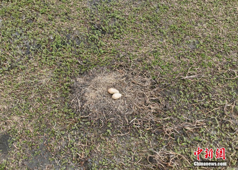 6月12日,西藏那曲市申扎縣濕地里的黑頸鶴蛋。申扎縣,平均海拔超過4500米,是黑頸鶴在中國的主要繁殖地之一。每年4月到6月,成群的黑頸鶴會(huì)來到這里,筑巢、孵化、養(yǎng)育下一代。近年來,為了保護(hù)這些珍貴的生靈,申扎縣采取了一系列措施,設(shè)立了監(jiān)測(cè)站,對(duì)黑頸鶴的棲息地進(jìn)行24小時(shí)監(jiān)控,確保它們的繁殖不受干擾。黑頸鶴是國家一級(jí)保護(hù)動(dòng)物,也是世界上唯一一種生長、繁殖在高原的鶴類。貢確 攝(無人機(jī)照片)