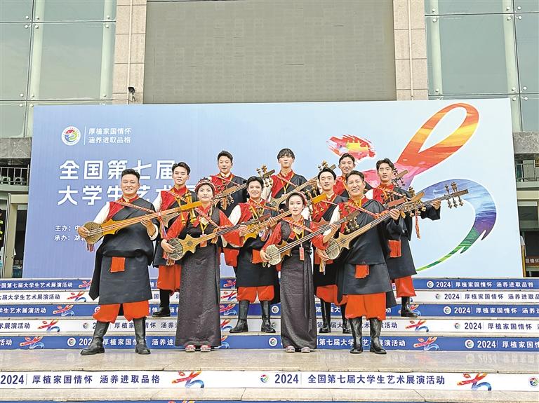 日前,以“厚植家國情懷 涵養(yǎng)進(jìn)取品格”為主題的全國第七屆大學(xué)生藝術(shù)展演活動(dòng)在湖北省襄陽市啟幕。西藏大學(xué)生帶來的《扎念彈唱:拉孜堆諧—夏龍查》《甲諧·古韻》分別獲得全國第七屆大學(xué)生藝術(shù)展演活動(dòng)器樂一等獎(jiǎng)和舞蹈一等獎(jiǎng)。