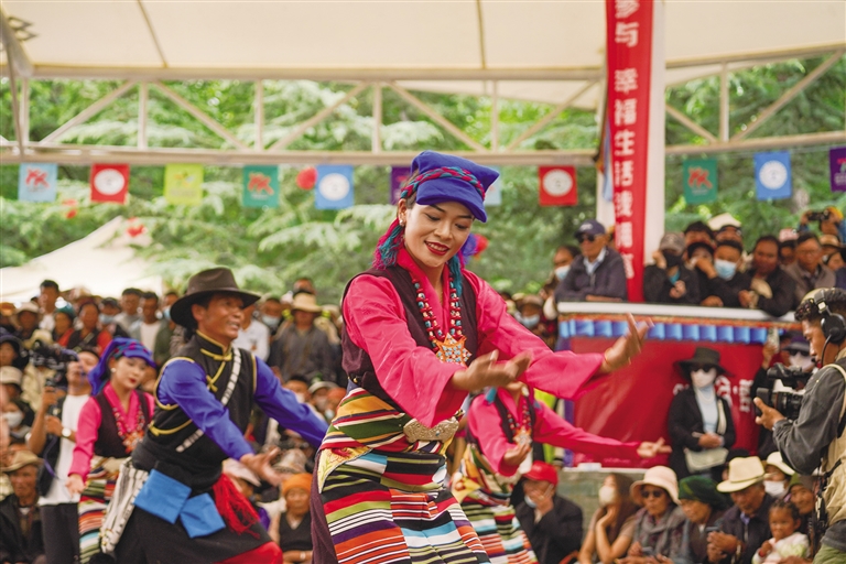 從傳統(tǒng)民族舞到現(xiàn)代創(chuàng)新舞,每支舞蹈都蘊(yùn)含著藏族人民對(duì)家鄉(xiāng)的熱愛和對(duì)美好生活的向往。比賽中,參賽人員身著特色民族服飾,伴隨著優(yōu)美激昂的旋律,踩著歡快的節(jié)拍,以飽滿的熱情和精湛的舞技,演繹了一場(chǎng)精彩而富有特色地域文化的廣場(chǎng)舞盛宴,凸顯了非物質(zhì)文化遺產(chǎn)的傳承創(chuàng)新發(fā)展。