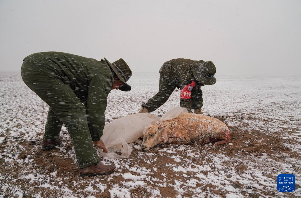 6月14日,在西藏那曲市尼瑪縣境內(nèi)的羌塘國(guó)家級(jí)自然保護(hù)區(qū)“無(wú)人區(qū)”深處,管護(hù)隊(duì)員用塑料布為受傷的母藏羚羊搭建簡(jiǎn)易帳篷擋風(fēng)遮雪。新華社記者 費(fèi)茂華 攝