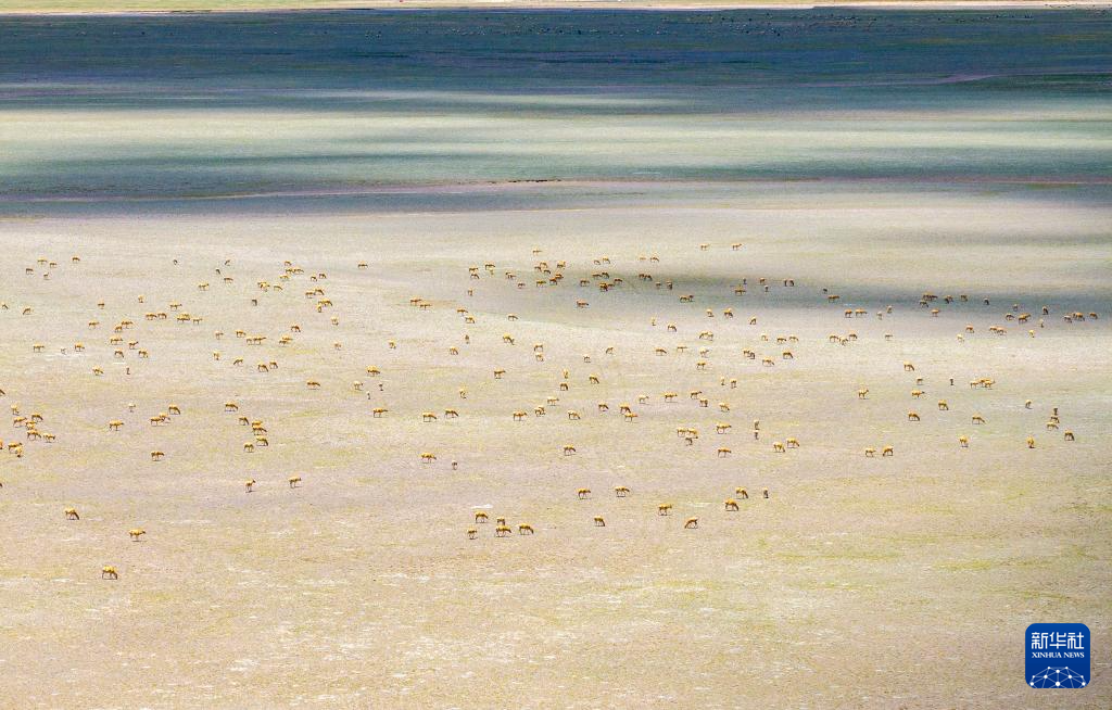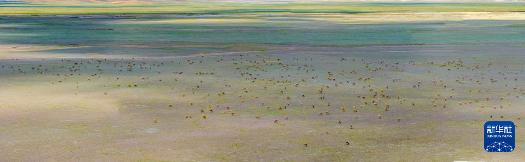 藏羚羊在魯確塘草原集結(jié)(無人機(jī)照片,6月8日攝)。新華社記者 姜帆 攝??