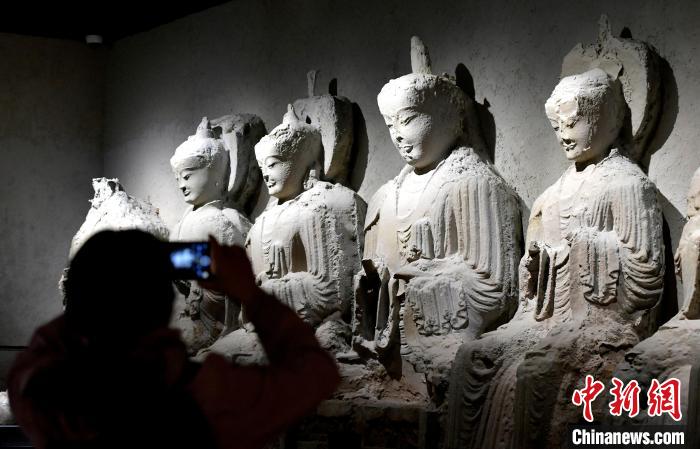 隨著西藏旅游旺季的到來,“高原城市會(huì)客廳”西藏博物館也迎來參觀熱潮。圖為6月19日,觀眾正在拍攝展陳的艾旺寺泥塑像。中新社記者 李林 攝