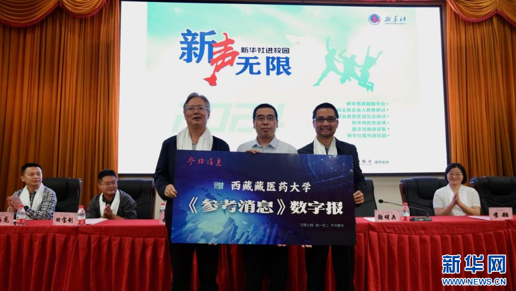 20日,“新聲無限——2024年新華社進(jìn)校園活動(dòng)”在西藏藏醫(yī)藥大學(xué)舉行。新華社參考消息報(bào)社向西藏藏醫(yī)藥大學(xué)贈(zèng)閱了《參考消息》數(shù)字報(bào)。參考消息報(bào)社總編輯陶德言,新華社西藏分社分黨組成員、副社長林建楊和西藏藏醫(yī)藥大學(xué)黨委書記、副校長鞠明兵致辭,西藏藏醫(yī)藥大學(xué)黨委委員、副校長于廣琮主持活動(dòng)儀式,參考消息報(bào)社專題室主任田寶劍 與到場師生進(jìn)行面對面分享交流。