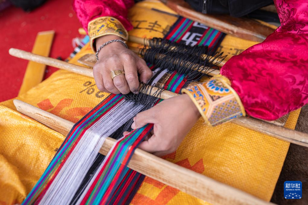 在那曲市雙湖縣,農(nóng)牧民選手在參加手工編織技藝比賽(6月20日攝)。新華社記者 丁增尼達(dá) 攝