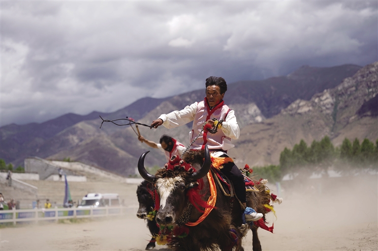 6月22日,由拉薩市人民政府主辦的拉薩首屆農(nóng)牧民運(yùn)動會在拉薩開幕。本屆運(yùn)動會為期5天,設(shè)競技項目、民族傳統(tǒng)與趣味項目兩個大類,涵蓋押加(大象拔河)、賽牦牛、藏棋、秀茲(藏式骰子)等19個比賽項目,共有來自拉薩市各縣(區(qū))、功能園區(qū)的11支代表隊500余名運(yùn)動員參賽。