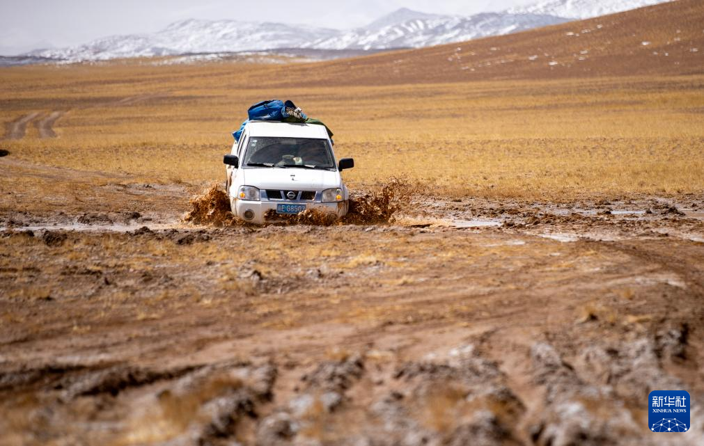 5月10日,野生動物專業(yè)管護(hù)隊(duì)員的車子在巡護(hù)路上穿越泥濘路段。新華社記者 姜帆 攝