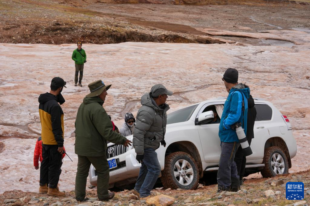 6月15日,車輛在羌塘國家級自然保護(hù)區(qū)內(nèi)過冰坡遇困。新華社記者 旦增尼瑪曲珠 攝