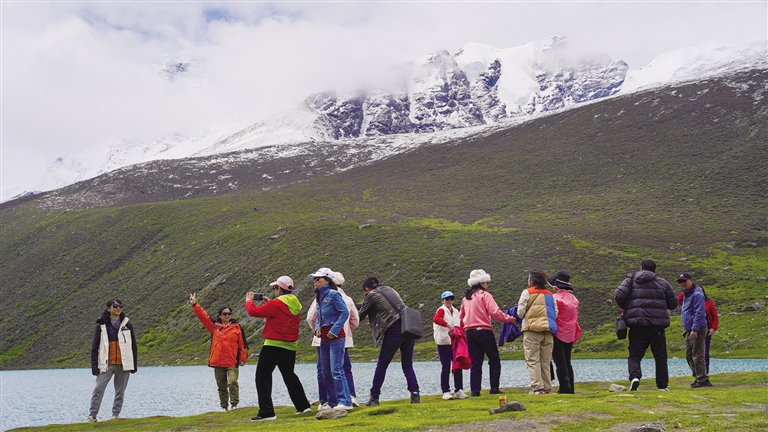 “眼前的景色如此浩瀚,無論我們?nèi)绾闻Γ紵o法將其完全收入眼底;手中的相機(jī)快門不停地按下,卻總感覺無法捕捉到每一處細(xì)節(jié)的美麗;社交媒體上的照片和視頻,雖然已經(jīng)分享了無數(shù),但總覺得還有更多美好未能展現(xiàn)。言語在這一刻顯得如此蒼白無力,無法完全傳達(dá)我們面對(duì)美景時(shí)的激動(dòng)心情?!边@是河南游客張曉明和劉芳夫婦對(duì)薩普雪山的贊美。置身于這絕美的畫卷中,一聲聲驚嘆,是他們對(duì)大自然鬼斧神工的贊美,也是他們內(nèi)心震撼的真實(shí)寫照。