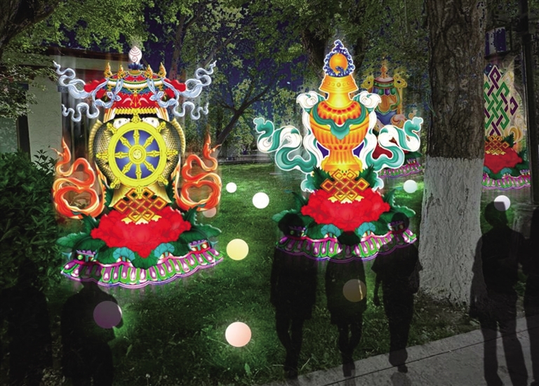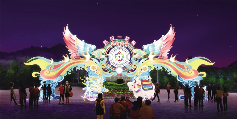記者了解到,“點亮拉薩——秦淮燈會”在宗角祿康公園東門設置大型燈組,搭配拉薩的吉祥物牦牛、江蘇的吉祥物麋鹿,燈組用拉薩經典配色,搭建飄逸的彩帶雙翼,表達“蘇拉一家親,攜手向未來”的寓意。在公園走廊里、草坪上,還用精致的現代光影作品,安排展示江南煙雨、小橋流水、青磚黛瓦、梅瓶明珠、桃花仙鶴、油傘折扇、上元燈彩等富有江蘇特色的美景雅韻以及具有拉薩特色的建筑和文化精品。