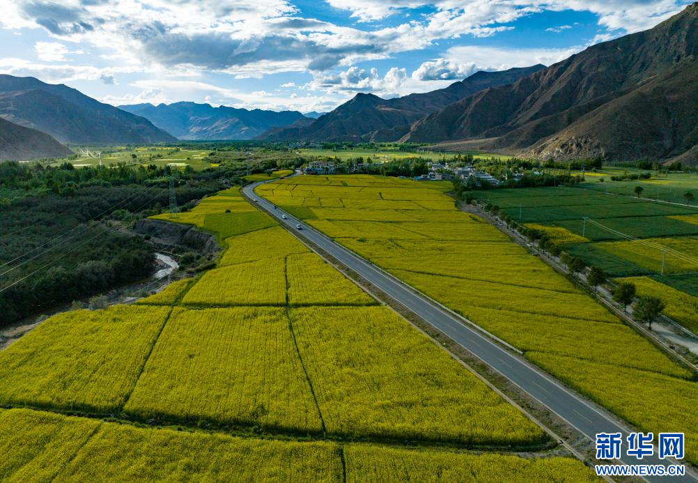 盛夏時節(jié),在西藏山南市乃東區(qū)雅礱河谷,金燦燦的油菜花與綠蔥蔥的青稞地交相輝映,河谷變成大自然的調(diào)色盤,宛如一幅絢麗的畫卷。