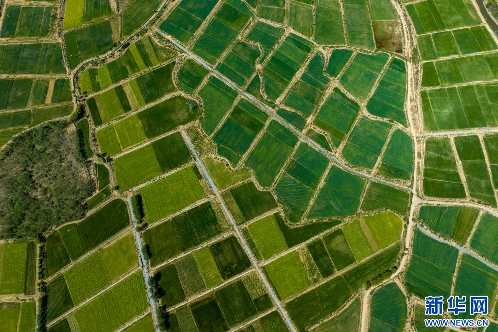 6月21日在西藏山南市乃東區(qū)境內(nèi)拍攝的田園風光(無人機照片)。新華網(wǎng) 旦增努布 攝