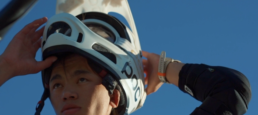 旦增吉美戴上頭盔準(zhǔn)備騎車速降