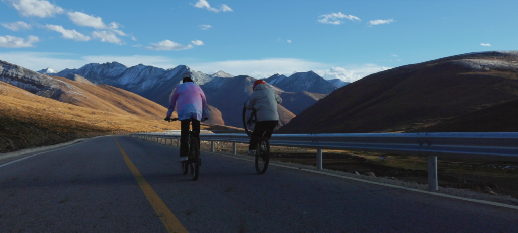 旦增吉美(左)和隊(duì)友在騎車的路上