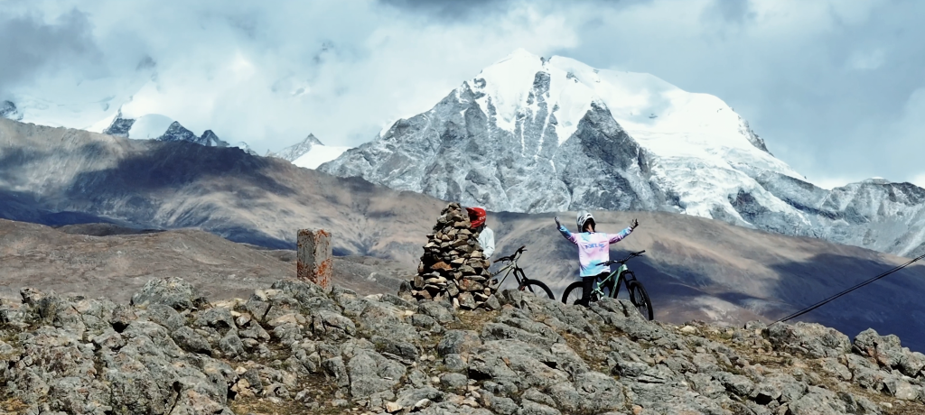 在高原速降,看著雪山和周圍的雄鷹