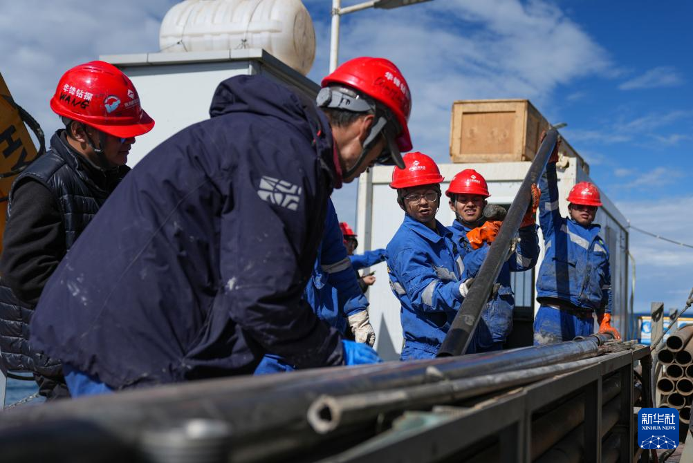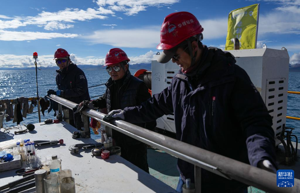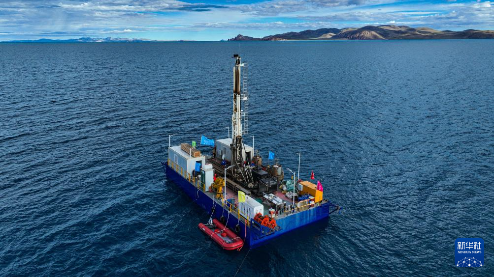 在海拔超過4700米的西藏納木錯(cuò),湖泊巖芯鉆探工作正在開展中。