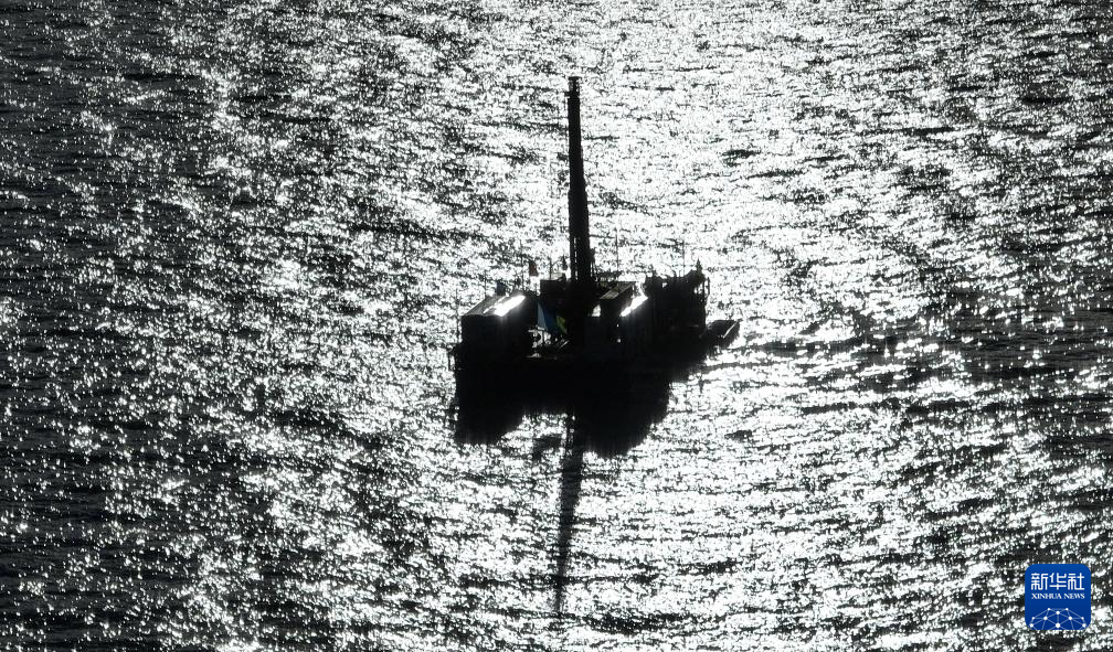 7月12日拍攝的納木錯水上鉆探平臺(無人機照片)。新華社記者 晉美多吉 攝