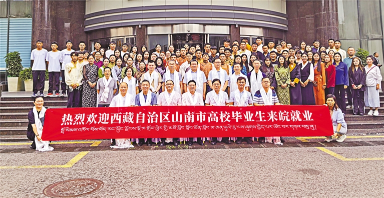 2023年9月,106名西藏籍高校畢業(yè)生組團赴安徽省就業(yè),在全區(qū)實現(xiàn)首個百人以上規(guī)模的“大組團”區(qū)外市場化就業(yè)目標。圖為西藏籍高校畢業(yè)生抵達安徽后合影留念。