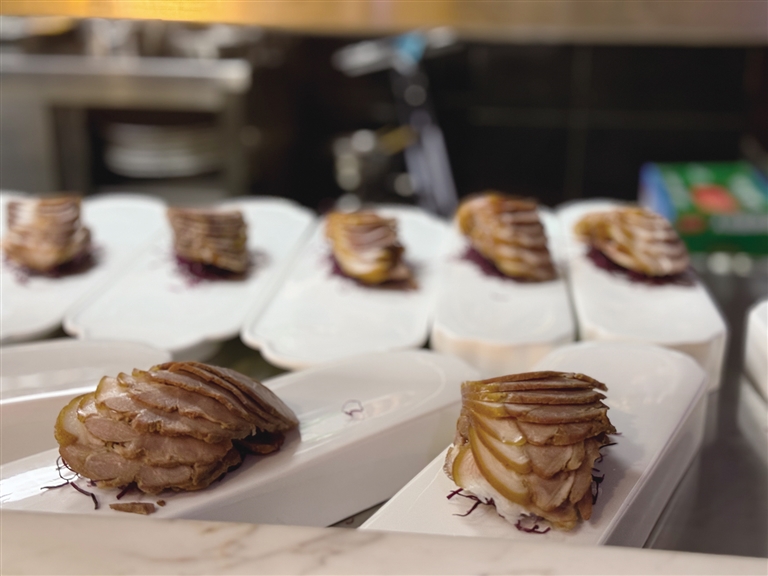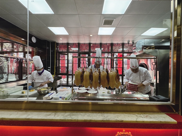 全聚德拉薩店選址于仙足島濱河路二期,店鋪設(shè)計(jì)匠心獨(dú)運(yùn),將古樸典雅的外部風(fēng)貌與簡(jiǎn)約優(yōu)雅的現(xiàn)代內(nèi)部裝飾巧妙融合。墻壁上隨處可見(jiàn)的掛畫在介紹著店鋪歷史的同時(shí),更為空間增添了一抹藝術(shù)氣息。開(kāi)業(yè)當(dāng)天,隨著歡快的開(kāi)場(chǎng)舞響起,慶典活動(dòng)正式拉開(kāi)帷幕?,F(xiàn)場(chǎng),片鴨師傅們以精湛的技藝展示著全聚德的獨(dú)特魅力,一只只色澤誘人的烤鴨在他們的巧手下化身為薄如蟬翼的鴨肉片,搭配新鮮的蔥絲、黃瓜條及特制甜面醬卷入薄餅中,一口咬下,鮮美與香甜在口中瞬間綻放,令人回味無(wú)窮。