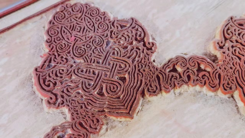 高原空氣干燥,對(duì)保存木刻構(gòu)成挑戰(zhàn)。為避免雕版變形開裂,古代匠人想到用酥油養(yǎng)護(hù)它。