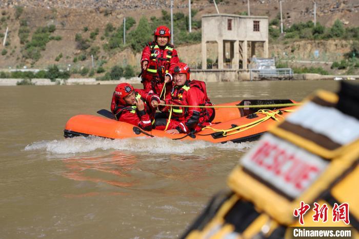 圖為昌都森林消防進行翻舟自救訓練。劉星文 攝
