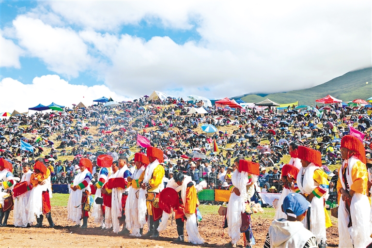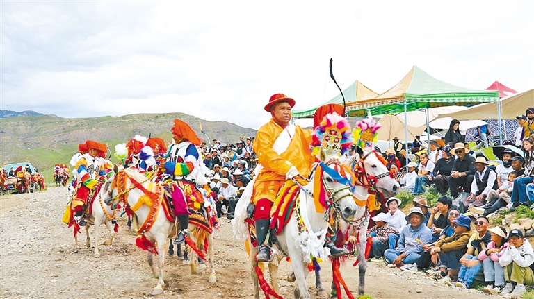 在邊交林鄉(xiāng)當(dāng)杰村“望果節(jié)”活動現(xiàn)場,隨著激昂的《運(yùn)動員進(jìn)行曲》,當(dāng)杰村“平措林望果節(jié)”活動拉開帷幕,38名馬術(shù)運(yùn)動員、38名射箭運(yùn)動員在2萬多名觀眾的歡呼聲中邁入現(xiàn)場。