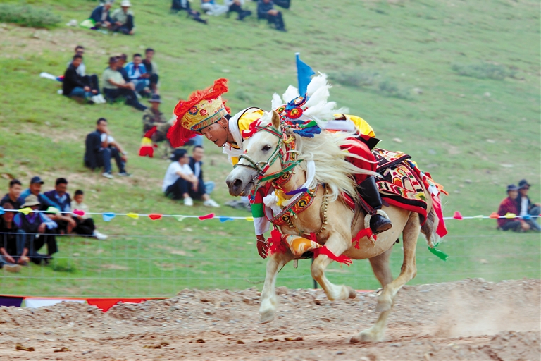 據(jù)悉,賽馬是西藏各地為慶祝豐收舉行“望果節(jié)”(賽馬節(jié))時的傳統(tǒng)慶典活動,是群眾最為喜愛、流傳最廣的體育運(yùn)動之一?!巴?jié)”作為一項(xiàng)具有悠久歷史的傳統(tǒng)節(jié)日,每年都會在林周縣加榮村如期舉行。