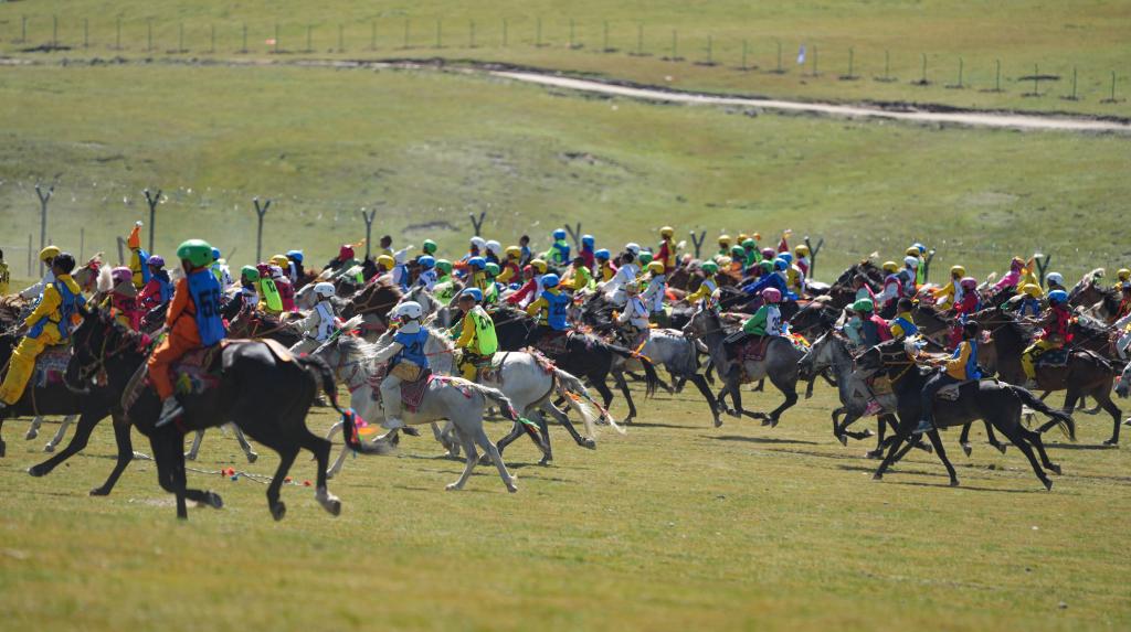 12日,10公里傳統(tǒng)大跑項(xiàng)目開(kāi)賽,上百匹駿馬在草原上揚(yáng)蹄疾奔,騎手多是十來(lái)歲的少年。15歲的普扎巴從6歲開(kāi)始做騎手,曾騎著當(dāng)?shù)卦S多名馬到各地參加比賽,拿過(guò)多次冠軍?!拔蚁嘈胚@次也能拿第一名。”10日,他在馬背上對(duì)記者說(shuō)。