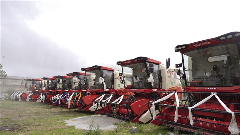 滴新社區(qū)新購置的聯(lián)合收割機(jī)。圖由乃東融媒提供