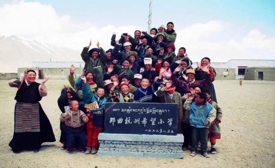 那曲市平均海拔達4500米以上,是西藏海拔最高的地級市。1995年5月,浙江省第一批援藏干部來到這里,他們調研發(fā)現(xiàn)當時那曲地區(qū)適齡兒童入學率只有22.5%,艱苦的環(huán)境和薄弱的基礎設施橫亙在高原兒童的求學路上。時任那曲縣常務副縣長的援藏干部姜軍給《杭州日報》領導寫了一封信,希望能夠獲得家鄉(xiāng)人民的支持,為那曲捐款建設一所小學。