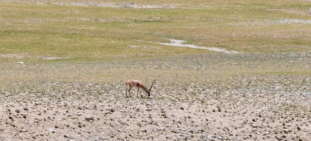 8月24日,一只公藏羚羊在雅魯藏布江源頭附近的草地上覓食。新華社記者 丁增尼達 攝