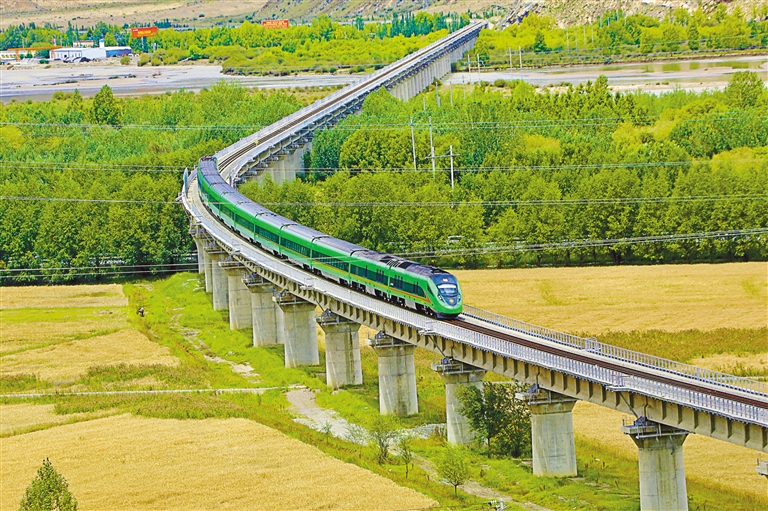 運行在拉日鐵路上的復興號動車組列車。