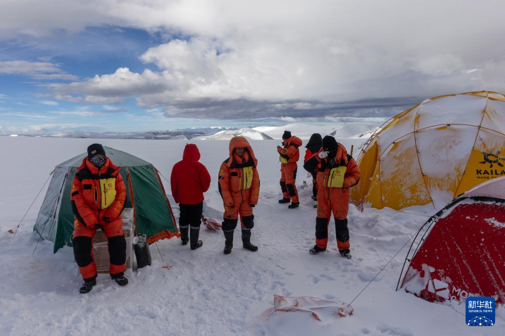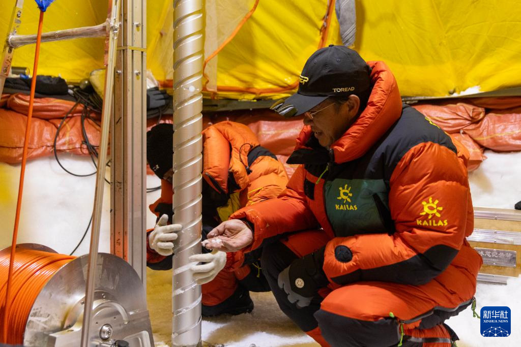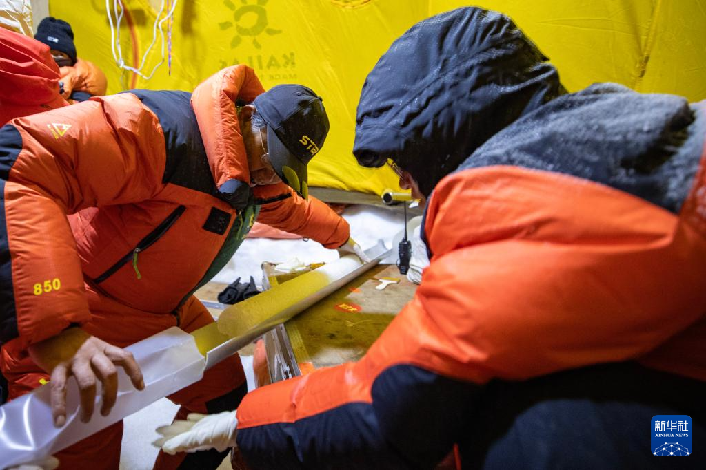 9月11日晚,由中國(guó)科學(xué)院青藏高原研究所副所長(zhǎng)徐柏青研究員帶領(lǐng)的科考團(tuán)隊(duì)在普若崗日冰原頂部海拔6100米的“Dome.C”點(diǎn)開機(jī)鉆取冰芯。