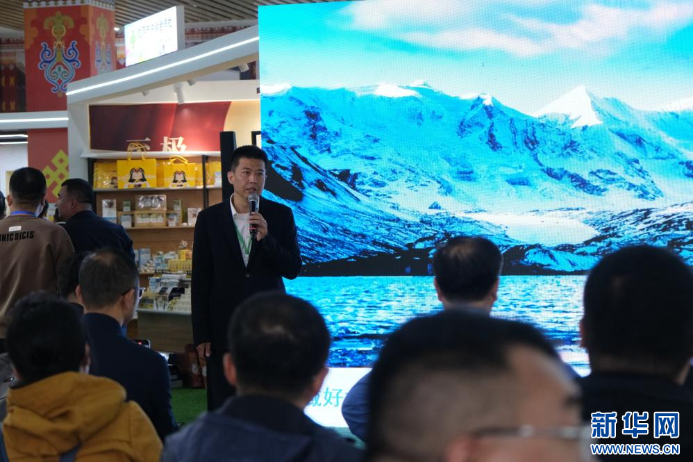 西藏供銷集團相關負責人正在向參會企業(yè)推介西藏特色產(chǎn)品。(西藏供銷集團供圖)