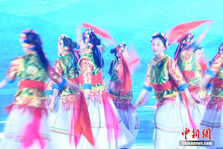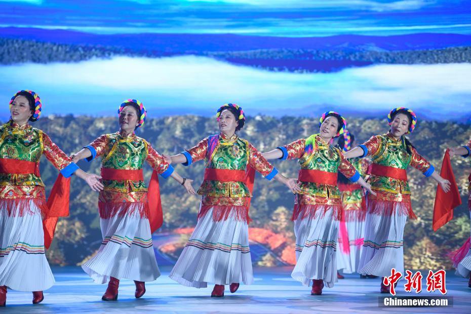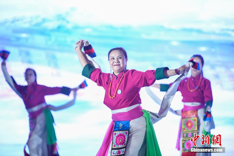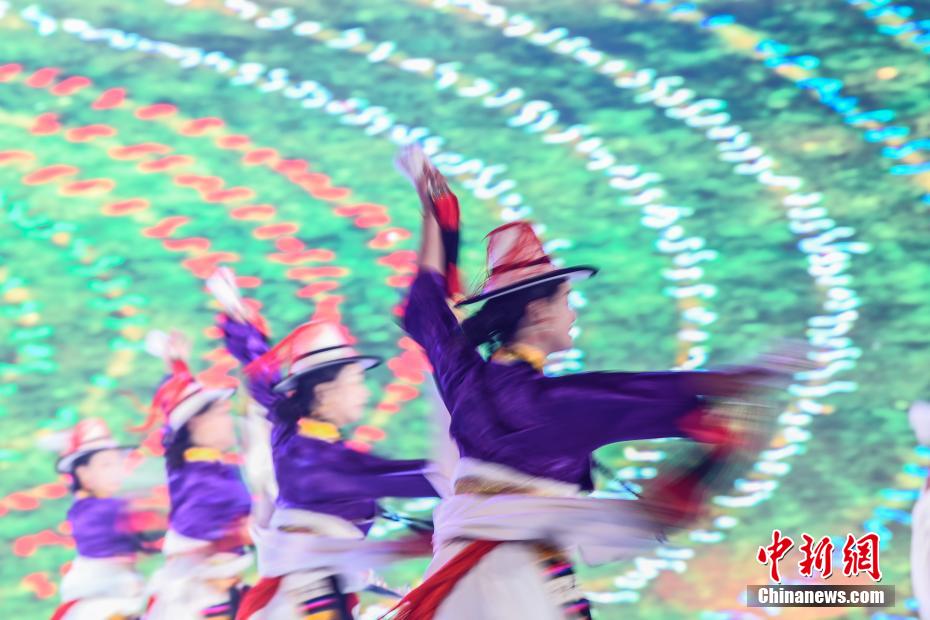 圖為2024年中國(guó)健身鍋莊舞大賽現(xiàn)場(chǎng)。中新社記者 貢嘎來(lái)松 攝