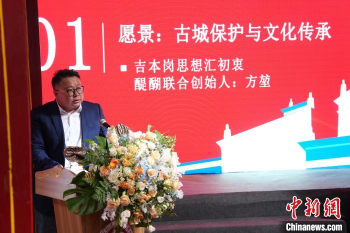 吉本崗藝術(shù)中心負責(zé)人方堃在活動中演講。記者 崔楠 攝