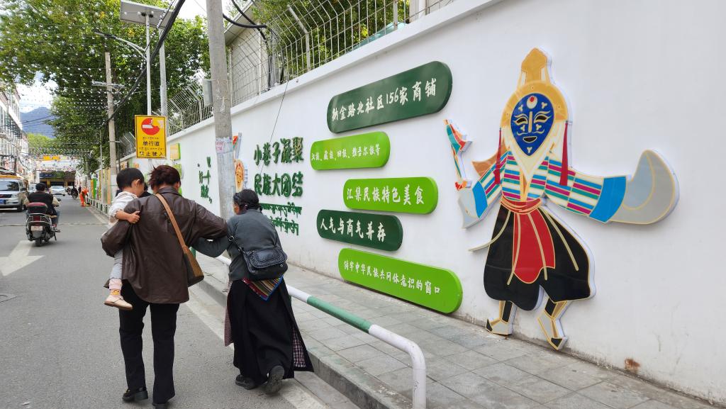 圖為西藏拉薩市城關(guān)區(qū)嘎瑪貢桑街道納金路北社區(qū)在洽瑪崗路打造的主題文化墻。(受訪者供圖)