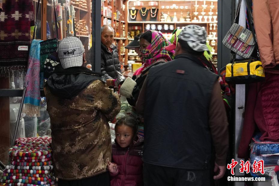 9月30日,民眾在位于西藏阿里地區(qū)普蘭縣的唐噶邊貿(mào)市場選購商品。中新社記者 崔楠 攝