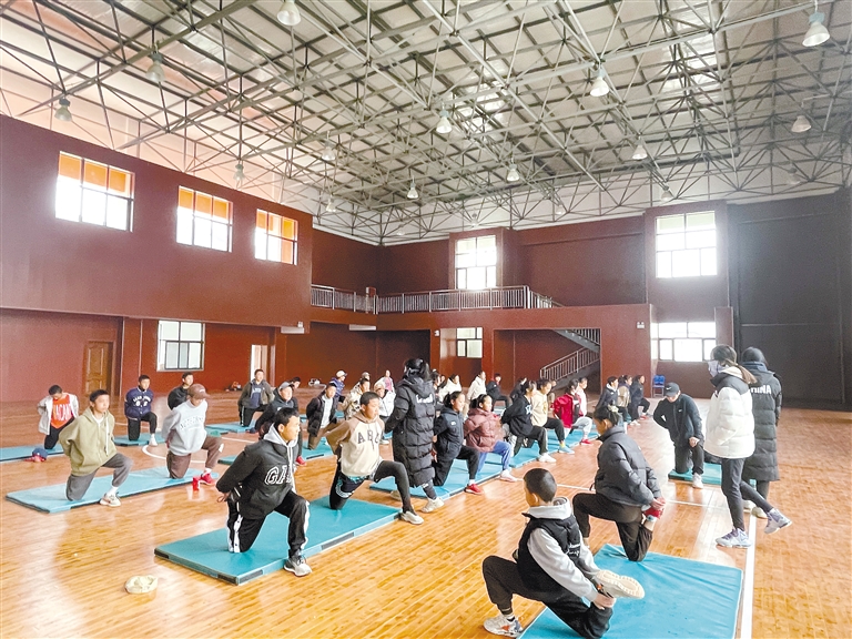 圖為支教隊(duì)員帶領(lǐng)孩子們進(jìn)行室內(nèi)訓(xùn)練。