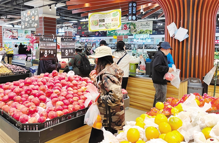 近日,拉薩市民在琳瑯滿目的超市食品區(qū)選購蔬果。記者 旦增蘭澤 攝