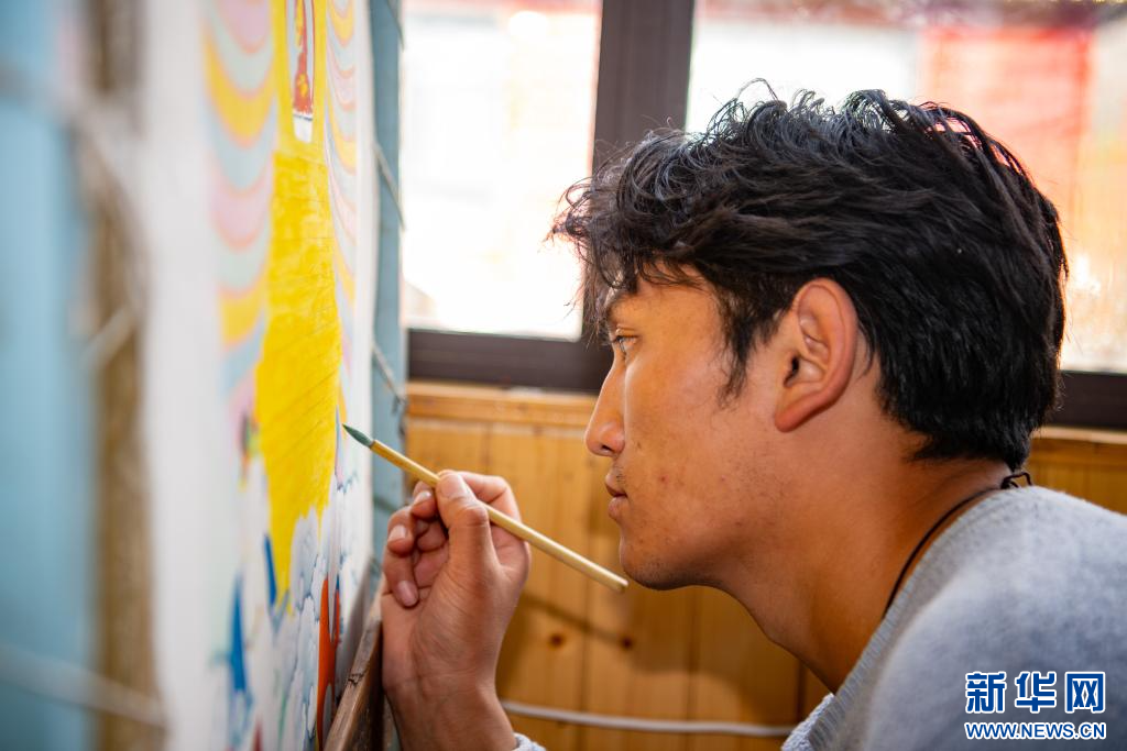 10月17日拍攝的卡若區(qū)嘎瑪鄉(xiāng)比如村的一家唐卡畫院。新華網(wǎng) 旦增努布 攝