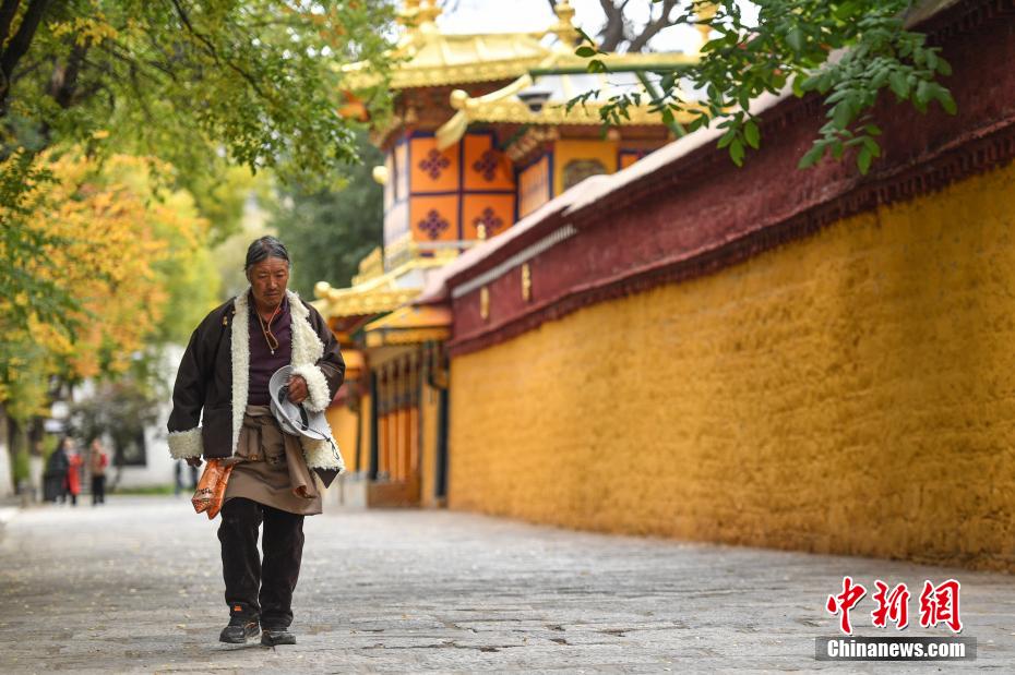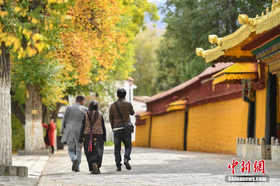 金秋十月,拉薩市西郊羅布林卡秋意正濃,景色宜人。眾多市民、游客紛紛前往打卡。羅布林卡藏語意為“寶貝園林”,始建于公元十八世紀40年代,是典型的藏式風格園林,也是西藏的世界文化遺產(chǎn)之一,有格桑林卡、措吉頗章、金色頗章等宮殿建筑群。這里秋景如畫,成為人們感受自然與歷史文化的好去處。圖為10月21日,游客在羅布林卡內(nèi)參觀游覽。貢嘎來松 攝