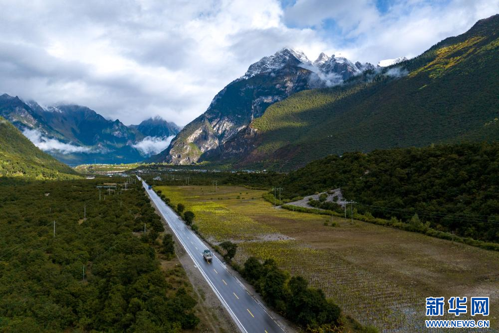 10月13日,在西藏昌都市八宿縣境內(nèi)川藏公路沿途拍攝的雪山(無(wú)人機(jī)照片)。新華網(wǎng) 旦增努布 攝